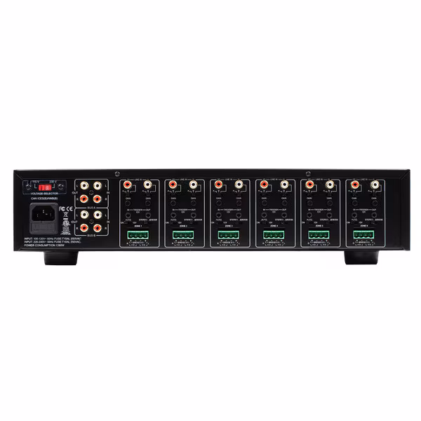 Der Dayton Audio MA1280 eignet sich gleichermaßen für die Einrichtung in einem einzelnen Raum und dient als Hauptstromquelle für Mehrkanal-Surround-Systeme, wenn Ihr Receiver zusätzliche Leistung benötigt oder keine integrierte Verstärkung hat. Für eine noch höhere Ausgangsleistung können alle sechs Zonen überbrückt werden, um bis zu 160 Watt RMS pro Kanal bei einer 8-Ohm-Last zu liefern.