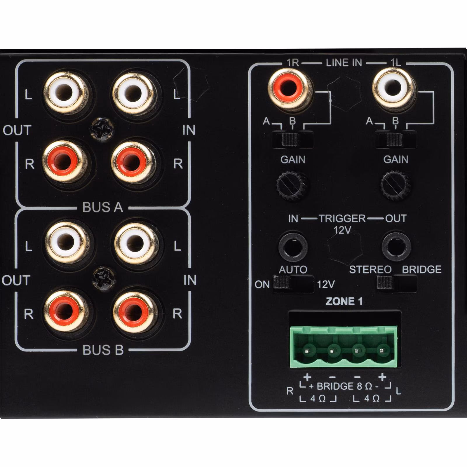 Das System verfügt über zwei vielseitige Bus-Eingänge, die auf jeden Kanal geroutet werden können, sodass Sie gemeinsame Audioquellen mühelos auf mehrere Zonen verteilen können. Für eine bessere Steuerung kann jeder Kanal auch mit einem eigenen Eingang konfiguriert werden, sodass bei Bedarf eine unabhängige Quellenauswahl möglich ist.