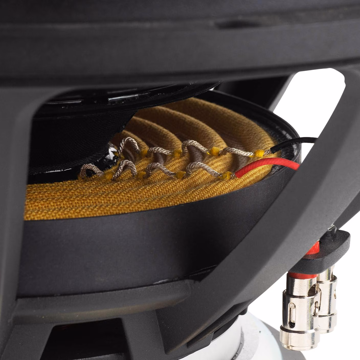 Der SS15-22 wird von einer 3 Zoll großen, 4-lagigen Kupfer-Schwingspule angetrieben, die auf einen belüfteten Aluminiumträger gewickelt ist. Die mehrlagige Wicklung erhöht die Motorstärke und -steuerung, indem sie die Präsenz der Spule im Spalt maximiert, während der Aluminiumträger als Kühlkörper fungiert, um die Wärme während anspruchsvoller Wiedergaben von der Spule abzuleiten. Eine umfangreiche Belüftung der gesamten Motorstruktur – einschließlich Träger, Polstück, Zentrierspule und Schwingspulenabstand – sorgt für einen effizienten Luftstrom und eine effiziente Kühlung, wodurch die Kompression selbst bei anhaltend hoher Leistung minimiert wird.