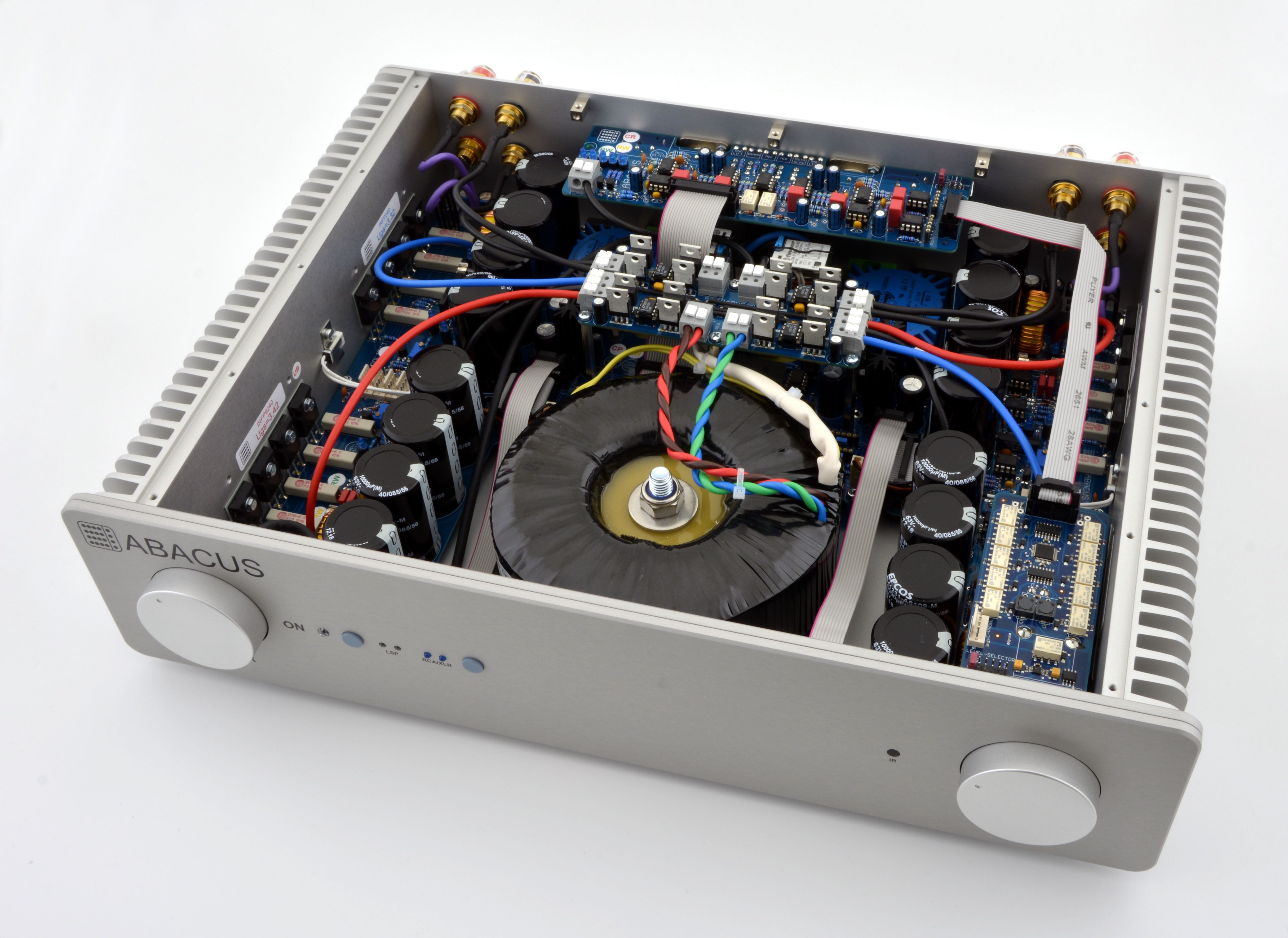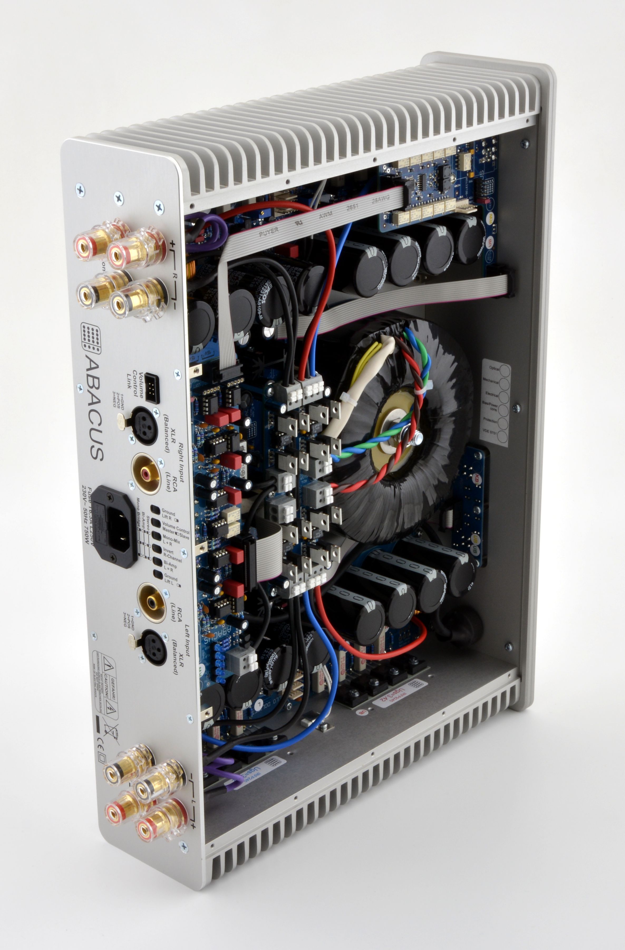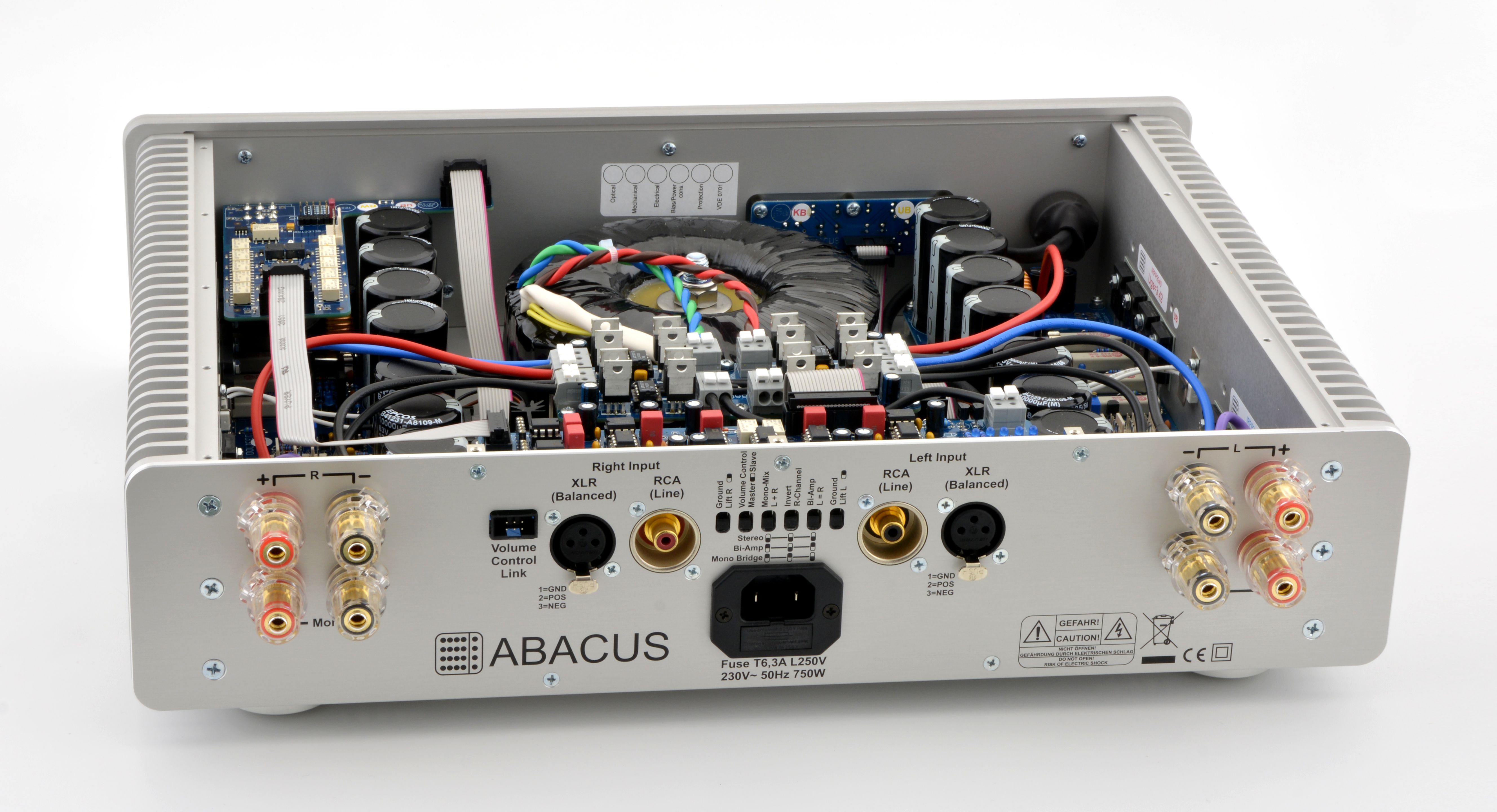 Erstmals beim ABACUS 60-120D eingeführt hat die Dolifet-Schaltung im Hause inzwischen Einzug in die meisten Verstärker- und Aktivlautsprecherprodukte gehalten. Sie kombiniert die Lastunabhängigkeit und extreme Kontrolle, die alle Verstärker-Schaltungsvarianten bei ABACUS für sich beanspruchen mit noch größerer Bandbreite, Stabilität und Verzerrungsarmut. Beim Ampollo hängen die Lautsprecher an jedem Kanal an den Drainausgängen von insgesamt acht Leistungs-MOSFETs, vier für den positiven und vier für den negativen Zweig. Hier arbeiten also im Ganzen 16 Endstufentransistoren. Sie werden präzise aufeinander "gematched" und können gemeinsam Spitzenströme von vielen Zig Ampere verarbeiten.