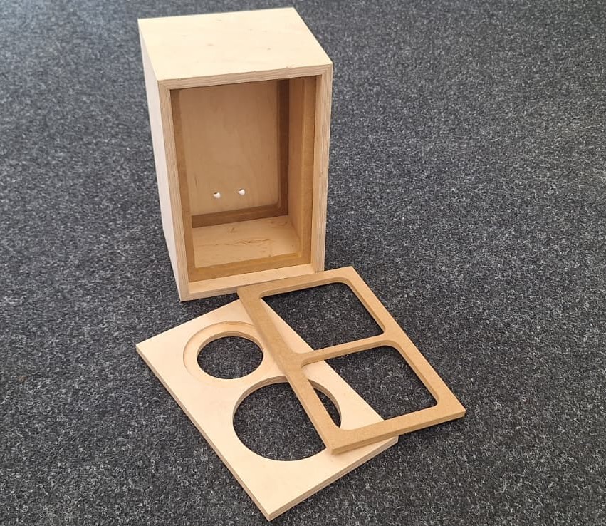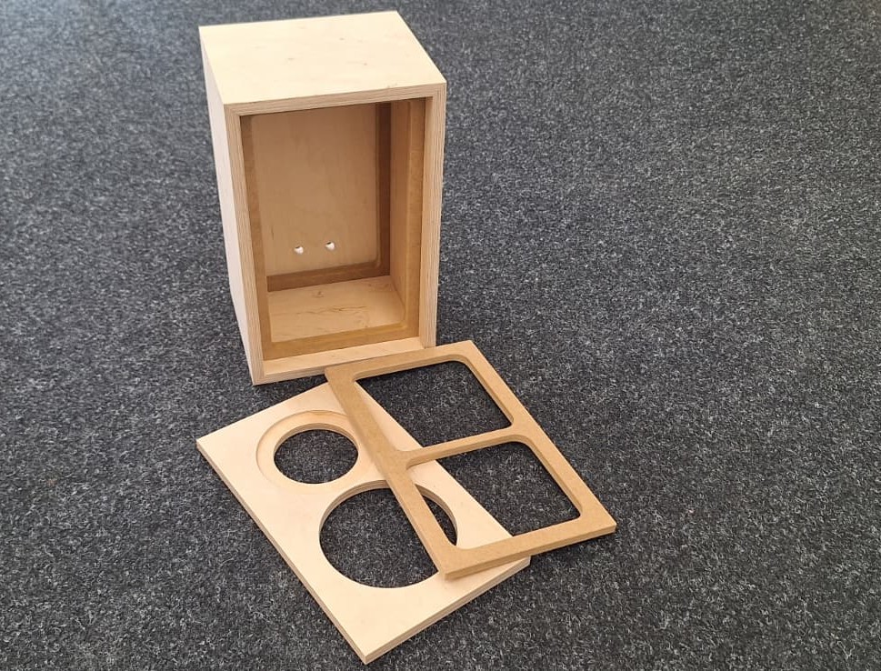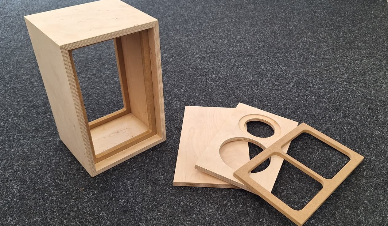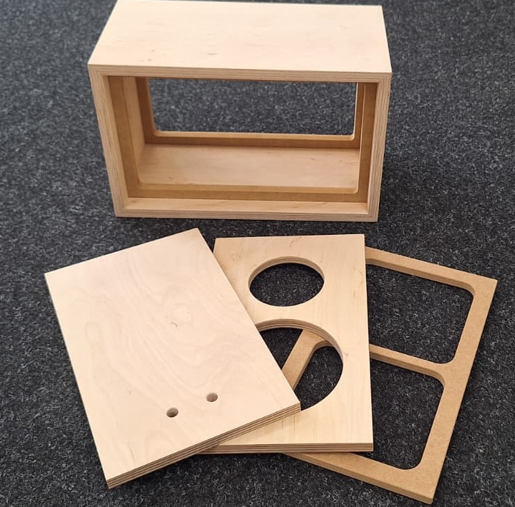 Der Gehäusebausatz für Harwood Acoustics Monitor LS 3/5A BBC ist in MDF Roh und Birke Multiplex (Materialstärke 12mm, Qualitätsstufe BB) erhältlich.